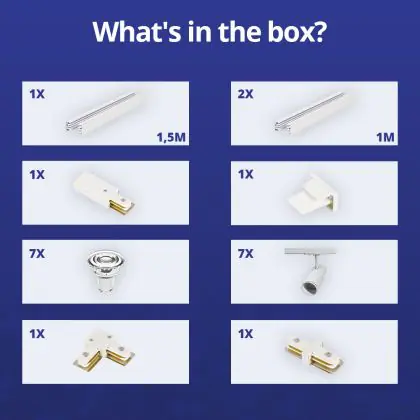 Complete Set 1-Phase Rail L 1,5 x 2 Meter White | incl. 7x Spot + GU10 2700K 3W Dimmable + End Cap, Power Connector and L -Connector