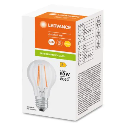 Ledvance Classic LED E27 Pear Filament Clear 6.5W 806lm - 827 Extra Warm White | Replaces 60W