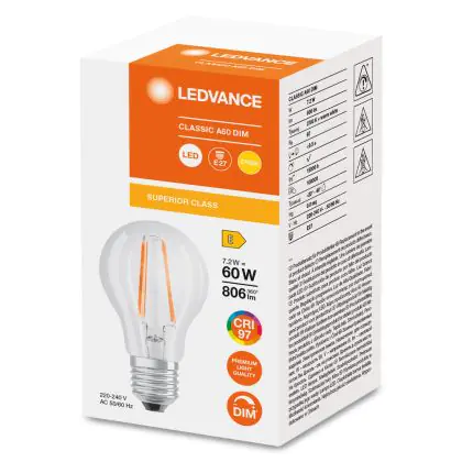 Ledvance Classic LED E27 Pear Filament Clear 7.2W 806lm - 927 Extra Warm White | Best Colour Rendering - Dimmable - Replaces 60W