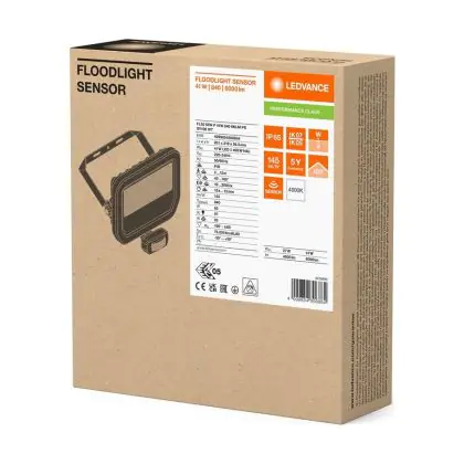 Ledvance LED Floodlight Aluminium White 41W 6000lm 100D - 840 Cool White | IP65 - Motion And Light Sensor - Symmetrical