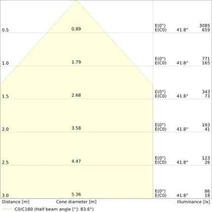 The colour code is a combination of colour rendering (CRI) and light colour (Kelvin). The first number indicates the colour rendering (1 = very poor colour rendering, 9 = maximum colour fastness). The second and third number contains the light colour. Example: the colour code 830 consists of good colour rendering (8) and warm white light (3000K). |
