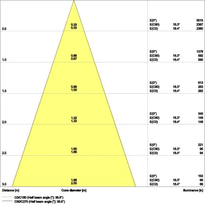 The colour code is a combination of colour rendering (CRI) and light colour (Kelvin). The first number indicates the colour rendering (1 = very poor colour rendering, 9 = maximum colour fastness). The second and third number contains the light colour. Example: the colour code 830 consists of good colour rendering (8) and warm white light (3000K). |
