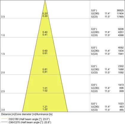 The colour code is a combination of colour rendering (CRI) and light colour (Kelvin). The first number indicates the colour rendering (1 = very poor colour rendering, 9 = maximum colour fastness). The second and third number contains the light colour. Example: the colour code 830 consists of good colour rendering (8) and warm white light (3000K). |