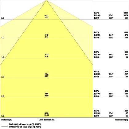 The colour code is a combination of colour rendering (CRI) and light colour (Kelvin). The first number indicates the colour rendering (1 = very poor colour rendering, 9 = maximum colour fastness). The second and third number contains the light colour. Example: the colour code 830 consists of good colour rendering (8) and warm white light (3000K). |