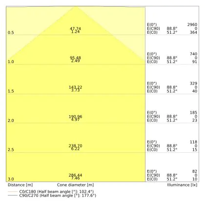The colour code is a combination of colour rendering (CRI) and light colour (Kelvin). The first number indicates the colour rendering (1 = very poor colour rendering, 9 = maximum colour fastness). The second and third number contains the light colour. Example: the colour code 830 consists of good colour rendering (8) and warm white light (3000K). |