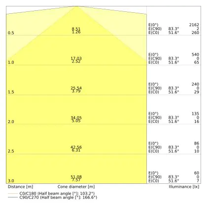 The colour code is a combination of colour rendering (CRI) and light colour (Kelvin). The first number indicates the colour rendering (1 = very poor colour rendering, 9 = maximum colour fastness). The second and third number contains the light colour. Example: the colour code 830 consists of good colour rendering (8) and warm white light (3000K). |