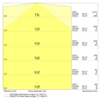 The colour code is a combination of colour rendering (CRI) and light colour (Kelvin). The first number indicates the colour rendering (1 = very poor colour rendering, 9 = maximum colour fastness). The second and third number contains the light colour. Example: the colour code 830 consists of good colour rendering (8) and warm white light (3000K). |