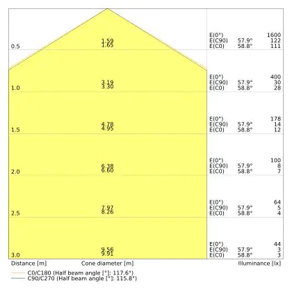 The colour code is a combination of colour rendering (CRI) and light colour (Kelvin). The first number indicates the colour rendering (1 = very poor colour rendering, 9 = maximum colour fastness). The second and third number contains the light colour. Example: the colour code 830 consists of good colour rendering (8) and warm white light (3000K). |