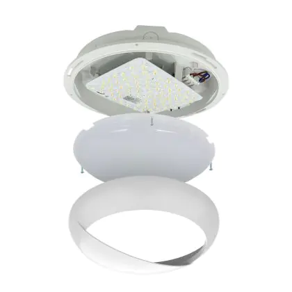 Noxion LED Bulkhead Pro V2 White 12/16/20W 2400lm - 830-840-865 CCT | 325mm - IP65 - Motion and Light Sensor - Emergency 3H + Eyelid Ring White