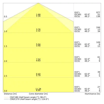 The colour code is a combination of colour rendering (CRI) and light colour (Kelvin). The first number indicates the colour rendering (1 = very poor colour rendering, 9 = maximum colour fastness). The second and third number contains the light colour. Example: the colour code 830 consists of good colour rendering (8) and warm white light (3000K). |