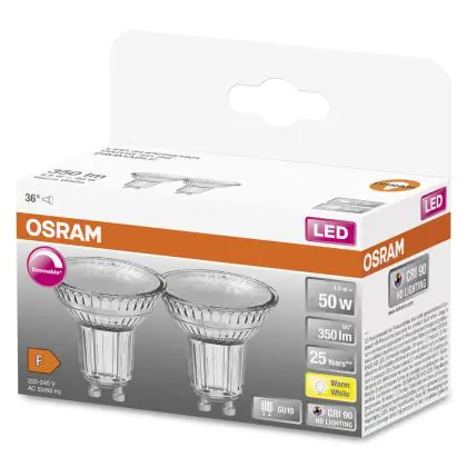 Osram Superstar LED GU10 Spot 4.5W 350lm - 927 Extra Warm White | Dimmable - Best Colour Rendering - Set of 2 - Replaces 50W