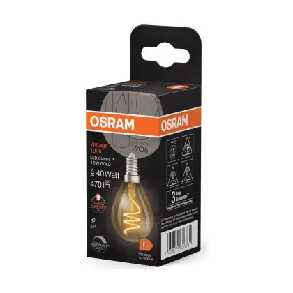 | Manufacturer Name | Vintage 1906 LED CLASSIC A,B,P SLIM FILAMENT DIMMABLE 4.9W 922 Gold E1 | |