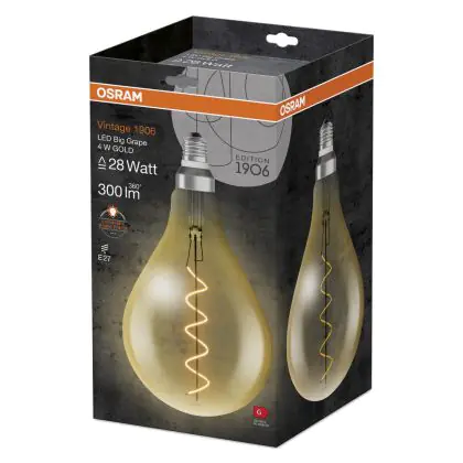 Osram Vintage 1906 LED E27 Pear Filament Gold 5W 300lm - 820 Extra Warm White | Replaces 40W