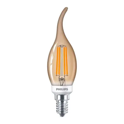 Philips Classic LED Candle E14 Bent-tip Filament Gold 5W 350lm - 822 Extra Warm White | Dimmable - Replaces 40W