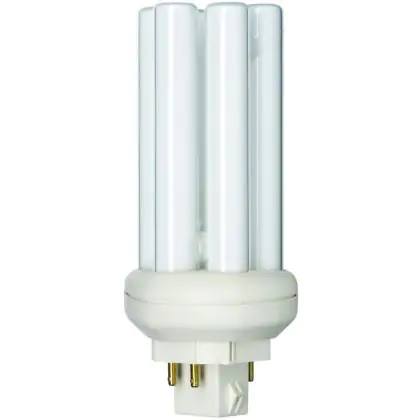 Philips PL-T 18W 830 4P have a warm light of a colour temperature of 3000K. The colour rendering index is excellent, more than 80Ra. Philips PL-T 18W 830 4P are very energy efficient: their energy label is classified B. Philips PL-T 18W 830 4P lamps also have a very long lifespan, 13000 hours on average!
