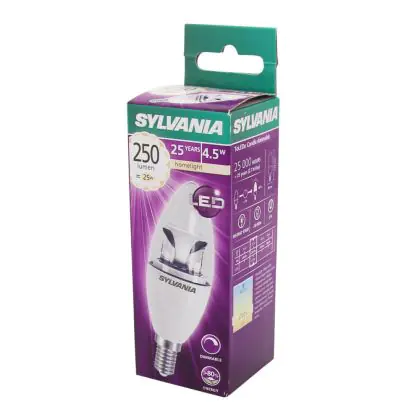 Sylvania ToLEDo E14 Candle Crown Clear 4.5W 250lm - 827 Extra Warm White | Dimmable - Replaces 40W